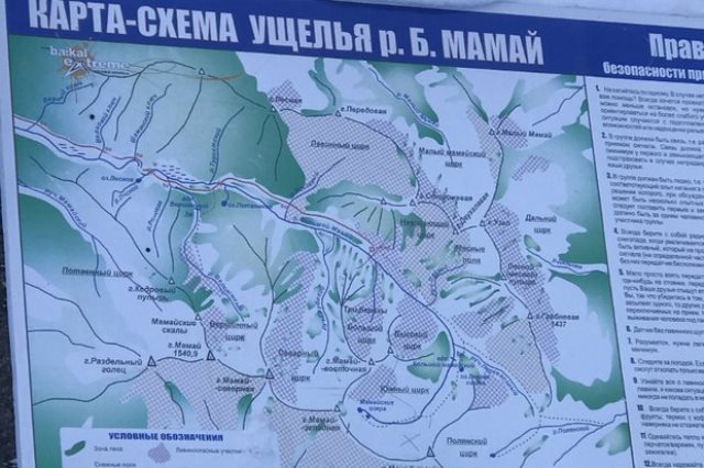 За поворотом, а это 193-й километр трассы Р-258 от Иркутска, увидите самодельный указатель «Мамай». Либо по карте найдите реку Большой Мамай. Можно ориентироваться на туристическую базу «Сердце Мамая». Заход на трассу есть за ней: через просеку в лесу и до ЛЭП, а от нее направо поворачиваете и до перекрестка с большой лесной дорогой, по которой уже идете до зимовья.