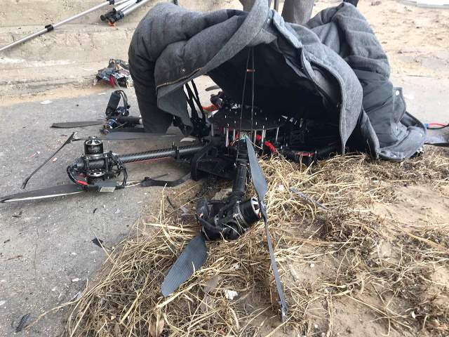 Но дрон потерпел крушение на пути следования – беспилотный летательный аппарат совершил столкновение с домом.